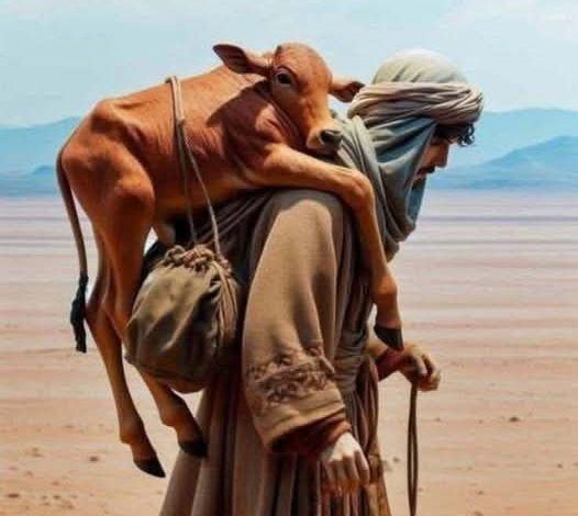 ﺍﻟﻄﺮﻳﻖ ﻭإﺫﺍ برجل ﻳﻤﺸﻲ ﺑﻼ ﺯﺍﺩ ﻭﻻ ﺭﺍﺣﻠﺔ ﻓﺴﻠﻤﺖ ﻋﻠﻴﻪ” ﻓﺮﺩ ﻋﻠﻲ ﺍﻟﺴﻼﻡ . ﻓﻘﻠﺖ له:من أﻳﻦ أﻧﺖ ؟! ﻗﺎﻝ: ﻣﻦ ﻋﻨﺪﻩ” . ﻓﻘﻠﺖ ﻟﻪ :ﻭﺍﻟﻰ أﻳﻦ ﺗﺮﻳﺪ ؟! ﻗﺎﻝ: إﻟﻰ