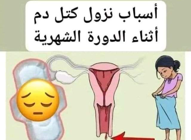 - قد لا يدل نزول كتل كبيرة تشبه الكبد أثناء الدورة الشهرية على مشكلة صحية، خصوصًا في حال حدوث ذلك بشكل عرضي، أما ملاحظة تكرار ذلك عدة دورات شهرية أو خروج كتل دموية يزدي حجمها عن حجم قطعة معدنية، فإن ذلك قد يدل على مشكلة صحية تستدعي التدخل الطبي، ومن الأسباب المرضية لنزول دم الدورة على شكل كتل تشبه الكبدة ما يأتي: