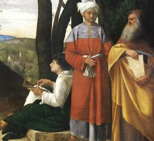 و كانت الضّفادع في حديقة القصر تحدث أصوات مزعجة ، فجأة نهض، وارتدى ملابسه ثم خرج ليتجوّل في المدينة، وحينئذ سمع أصواتا تتكلم في الظلام، فاتّجه نحوها ،وهناك وجد ثلاثة رجال جالسين.