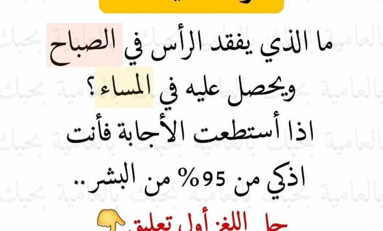 ماهو الشيء الذي يفقد رأسه في الصباح ويستعيده في الليل،يعد من الألغاز الصعبة التي تحتوي على فكرة جديدة في الحل وهي الرموز الحرفية،