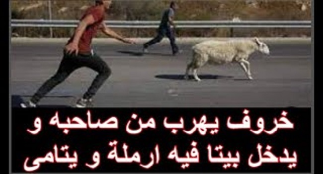 ﻛﺎﻥ ﺭﺟﻞ ﻳﻨﺰﻝ ﺧﺮﻭﻓﺎً ﻗﺪ ﺍﺷﺘﺮﺍﻩ .. ﻓﺎﻧﻔﻠﺖ ﺍﻟﺨﺮﻭﻑ ﻭﻫﺮﺏ !! ﻭﺻﺎﺭ ﺍﻟﺮﺟﻞ ﻳﻄارﺩﻩ ، ﺣﺘﻰ ﺩﺧﻞ ﺍﻟﺨﺮﻭﻑ ﺑﻴﺖ ﺃﻳﺘﺎﻡ ﻓﻘﺮﺍﺀ !!