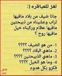 لغز جانا ضيف من بلاد مافيها تراب وذب@حناله ذبي@حتين مافيها عظام وركبناه خيل مافيها روح