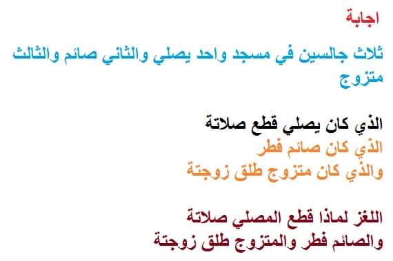 لغز ثلاثة في المسجد الأول يصلي والثاني صائم والثالث متزوج…