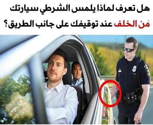 وعند وصولك إلى علامة التوقف بالشارع وجدت أحد الضباط خلفك وقد قام بتشغيل سارينة دورية الشرطة ثم بالنزول والنقر على الجزء الخلفي من سيارتك قبل تحرير المخالفة.