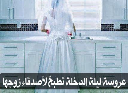 العروس صارت تقشر بطاطا وتعمل سلطھ وتبكي ۏدموعها عبت فستان الزفاف وقالت بعقلها بس يروحوا أصحابوا بتصل بأهلي ييجو ياخدوني والله