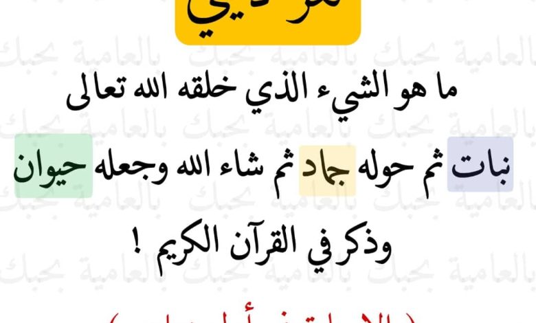 لغز ديني ماهو الشي الذي خلقه الله نبات ثم حوله جماد ثم حيوان