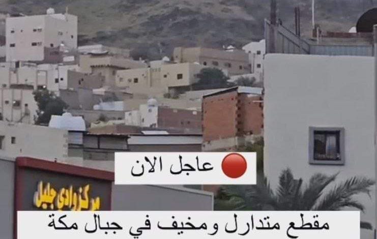 مقطع متداول ومخيف في جبال مكة المكرمة اثناء تساقط الامطار لظهور شيئ غريب وكبير يقف على جبال مكة