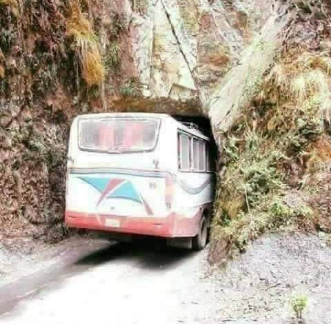 لكن المفاجأة هذه المرة كانت كبيرة فقد احتك الباص بسقف النفق وانحشر في منتصفه ..