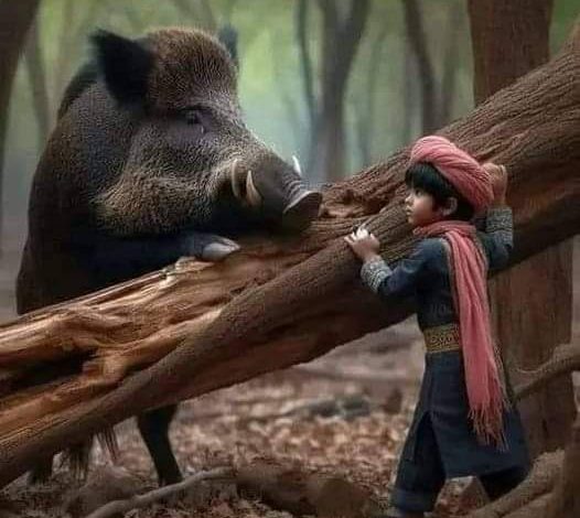 ﻓﻘﺪ ﺭﺃﻯ ﺧﻨﺰﻳﺮﺍ ﻳﻨﺤﺖ ﻓﻰ ﺷﺠﺮﺓ ﻭﻛﺎﺩ ﺃﻥ ﻳﺴﻘﻄﻬﺎ ﺇﻟﻰ ﺃﻥ ﺃﺗﻰ ﻓﺮﻉ ﺻﻐﻴﺮ ﻣﻦ ﻫﺬه ﺍﻟﺸﺠﺮﺓ ﻓﻀﺮﺏ ﺍﻟﺨﻨﺰﻳﺮ ﻓﺘﺤﻮﻝ ﺍﻟﺨﻨﺰﻳﺮ ﺇﻟﻰ ﻋﺒﺪ ﺻﺎﻟﺢ ﺟﻠﺲ ﻳﻌﺒﺪ ﺍﻟﻠﻪ ﺗﺤﺖ ﺍﻟﺸﺠﺮﺓ.
