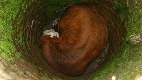 وقع حصان أحد المزارعين في بئر.. وكانت جافة من المياه..