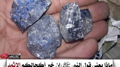 يقول النبي ﷺ: (” عليكم بالإثمدِ عند النوم ، فإنَّهُ يجلو البصرَ، ويُنبتُ الشَّعـرَ “،) ماهو الأثمد