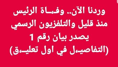 وردنا الآن.. وفاة الرئيس منذ قليل والتلفزيون الرسمي يصدر بيان شاهد لتكملة التفاصيل اضغط الرقم 2في السطر التالي