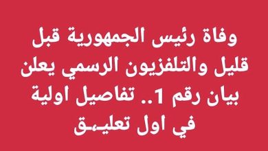 وردنا الآن.. وفاة الرئيس منذ قليل والتلفزيون الرسمي يصدر بيان شاهد لتكملة التفاصيل اضغط الرقم 2في السطر التالي